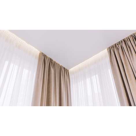 Профиль LumFer PDK60 рекомендуется к установке вдоль стен с окнами для организации ниши под карниз. Профиль LumFer PDK60 можно использовать для установки вдоль закругленных стен и для эркерных помещений. Профиль крепится к потолку при помощи анкерных уголков. При монтаже LumFer PDK60 расстояние от базового потолка до натяжного потолка составит от 6 см.