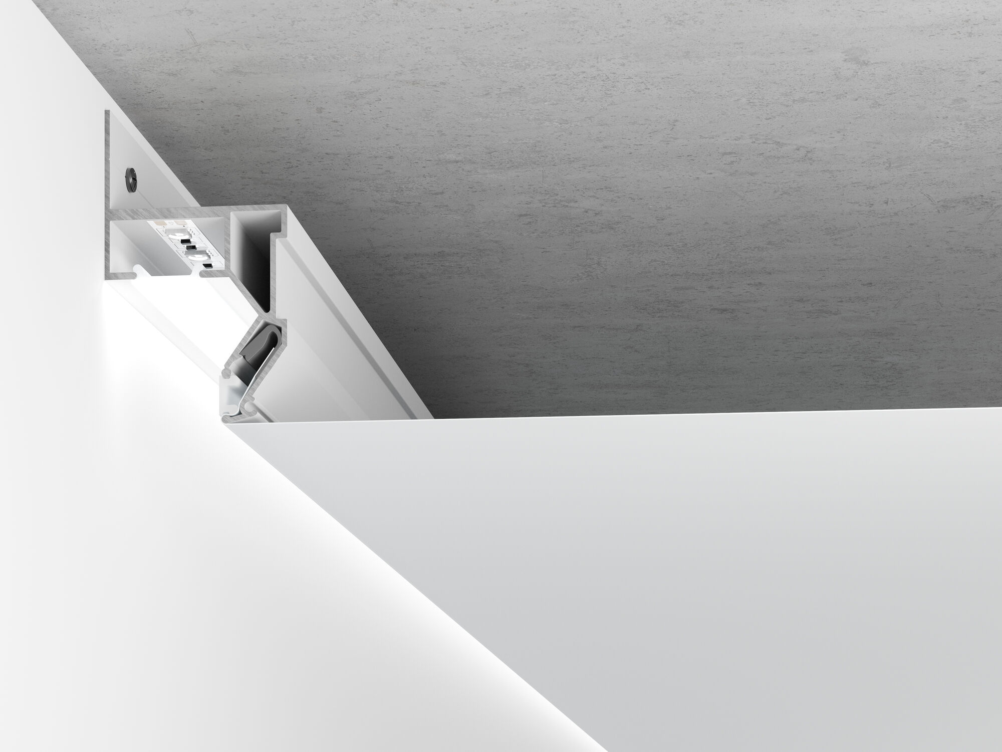 - светодиодная лента устанавливается на внутренней стенке профиля, что делает ее незаметной, световой зазор закрывается мягкой светорассеивающей вставкой;