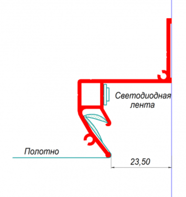 - Расстояние от стены до края профиля составляет 23,5 мм, что позволяет создать направленный вниз световой поток для равномерного освещения стены.