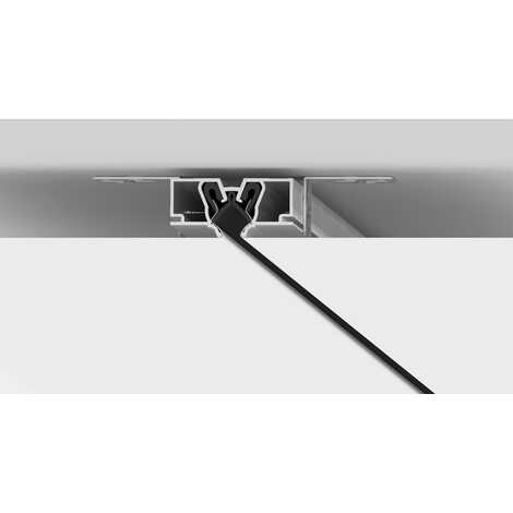 Разделительный профиль SLIM R – система для стыковки ПВХ полотен с созданием ровного теневого зазора. Используется как из-за технической необходимости (обход колонны, стыковка полотен при ширине помещения более 6 метров), так и по эстетическим соображениям.