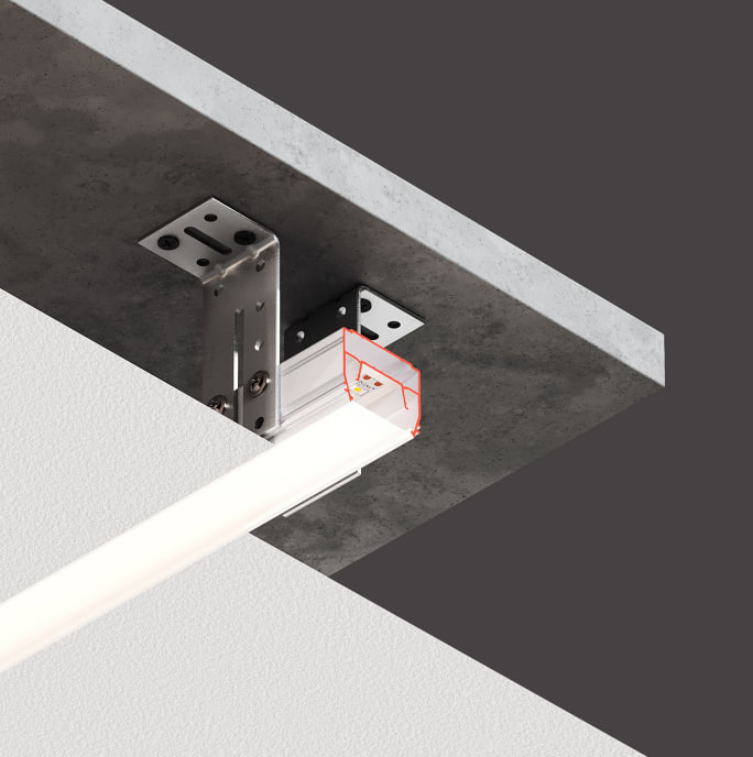 Профиль интегрированного линейного освещения Flexy LINE 30 M для натяжных потолков с гарпунной системой крепления полотна, для основного источника света.