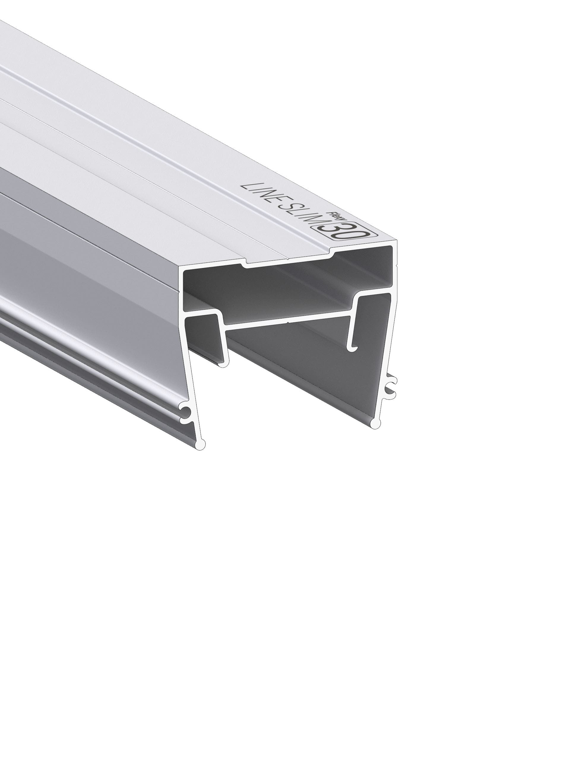 Профиль Flexy LINE SLIM 30 – специализированный профиль для натяжных потолков, предназначенный для создания световых линий. Этот профиль использует гарпунную систему крепления полотна, что обеспечивает надежность и долговечность конструкции.