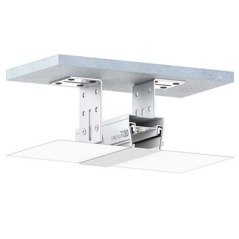 Разделительный профиль Flexy LINE 30 SLIM для натяжных потолков с гарпунной системой крепления полотна. Для изготовления световых линий. Для установки тканевого полотна нужен гарпун клинч.
