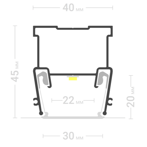 Профиль алюминиевый ПФ6838. Используется для создания конструкций натяжного потолка с ровной контурной подсветкой с помощью скрытой led ленты.