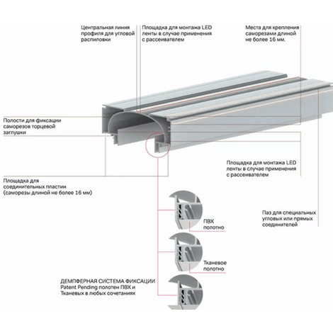 -   Система допустима к монтажу как в открытом виде, так и с рассеивателем в виде полупрозрачного полотна.