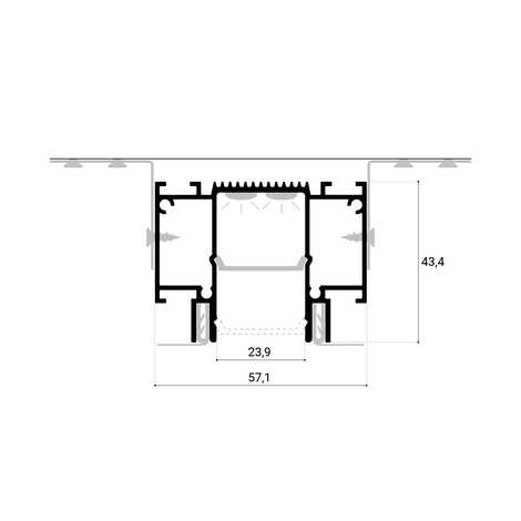 В конструкции SLOTT CANYON используется прочный поликарбонатный рассеиватель. Он может быть утоплен в профиль или расположен у самого края, что позволяет сделать видимую часть конструкции более объемной и интересной. Такое решение также скрывает стыки в углах рассеивателя. Ширина световой линии CANYON соответствует магнитной трек-системе SLOTT for TECHNOLIGHT.
