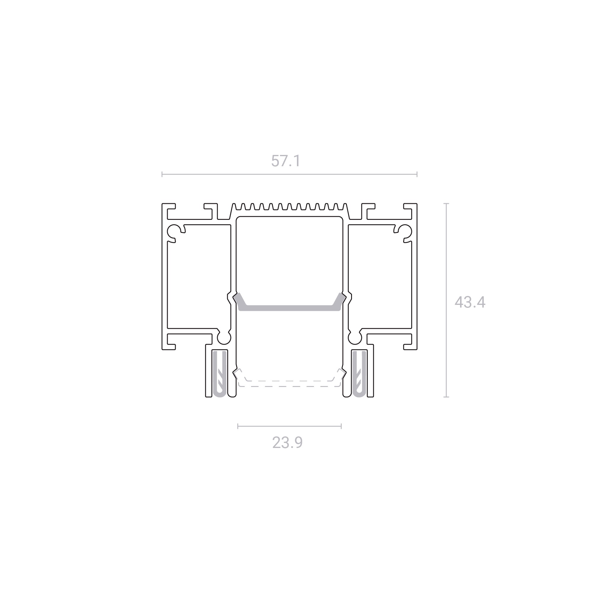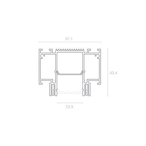 В конструкции SLOTT CANYON используется прочный поликарбонатный рассеиватель. Он может быть утоплен в профиль или расположен у самого края, что позволяет сделать видимую часть конструкции более объемной и интересной. Такое решение также скрывает стыки в углах рассеивателя. Ширина световой линии CANYON соответствует магнитной трек-системе SLOTT for TECHNOLIGHT.
