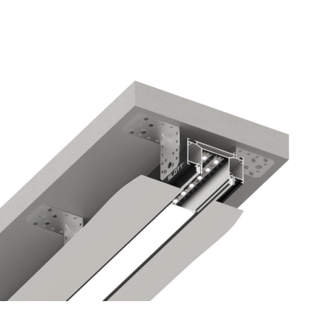 Главная особенность данного решения — демпферная система крепления, которая обеспечивает бесщелевое примыкание, подходит как для ПВХ, так и для ткани. Дополнительными элементами решения являются торцевые заглушки и система стыковки в четырех точках (для углового и прямого соединения). Профиль поставляется в комплекте с демпфером.