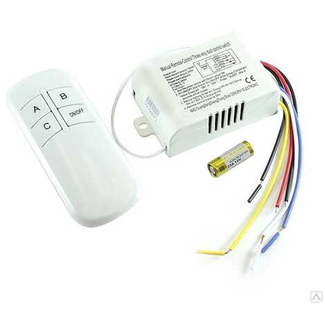 Дистанционный выключатель позволяет управлять освещением в помещении на расстоянии с помощью радиосигнала. Он состоит из приёмного блока и пульта дистанционного управления. Блок приемника соединяется со световыми приборами, а пульт позволяет управлять блоком на расстоянии с помощью радиосигнала. Выключатель имеет 3 сигнальных канала, что позволяет управлять включением разных световых приборов на расстоянии с помощью пульта. На каждый канал можно подключить один или несколько осветительных приборов и подключать эти приборы отдельно друг от друга. Таким образом у Вас появляется возможность регулировать уровень освещённости в помещении. На каждом канале дистанционного выключателя имеется большой запас мощности до 800 Ватт. Сигналы двух и более выключателей не пересекаются.