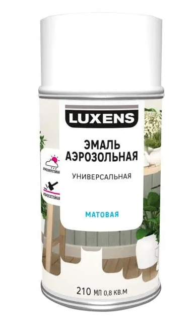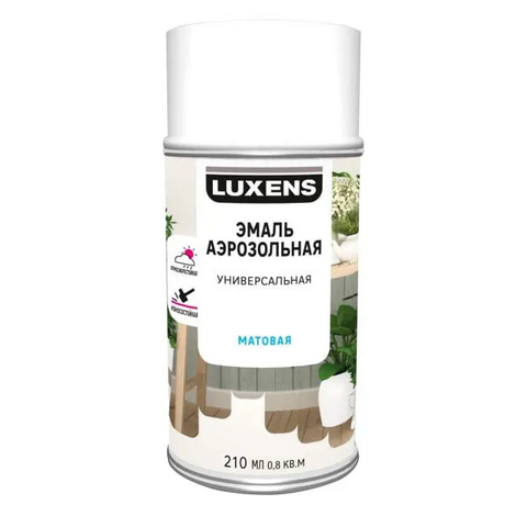 Аэрозольная эмаль Luxens универсальная идеально подходит для окрашивания и обновления любых поверхностей. Благодаря особому составу ее можно наносить прямо на ржавчину, она устойчива к ударам, царапинам и пожелтению, выдерживает температуру до 80 °C. После нанесения поверхность легко очищается, ее можно мыть. Объем баллона — 210 мл. Эмаль неподтекающая, время высыхания между двумя слоями — 15 минут, полностью высыхает за сутки. Цвет — черный, матовый.