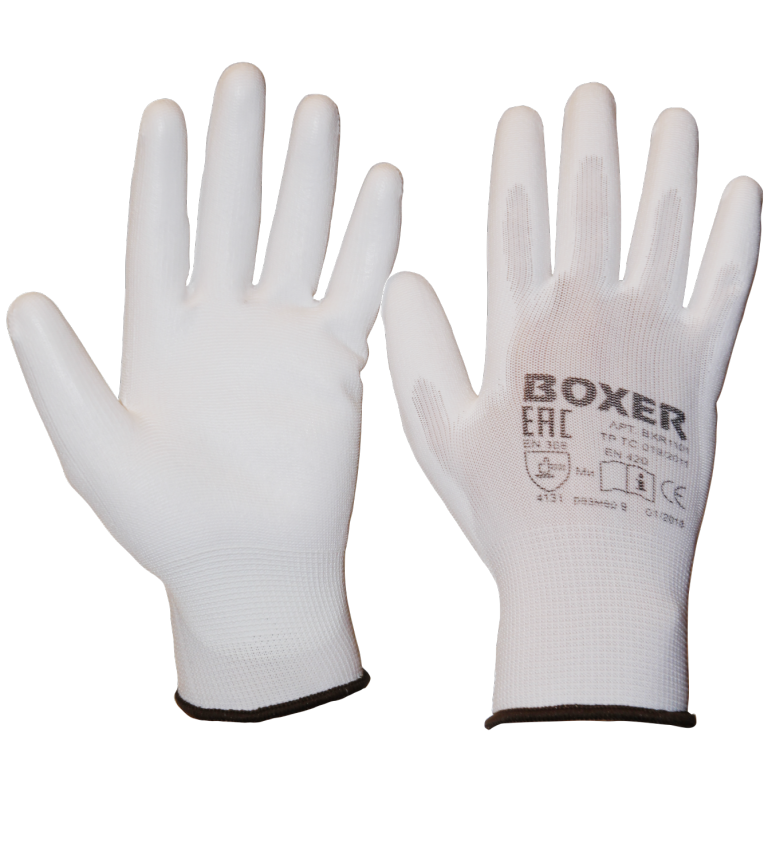 BOXER Перчатки нейлоновые белые полиуретановым покрытием (размер 10)