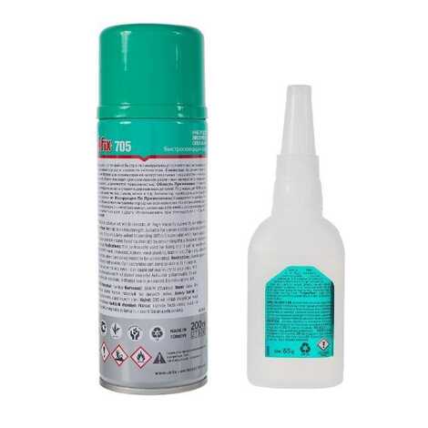 AKFIX 705 – двухкомпонентный клей, который состоит из вязкого геля цианоакрилата и аэрозоля активатора.