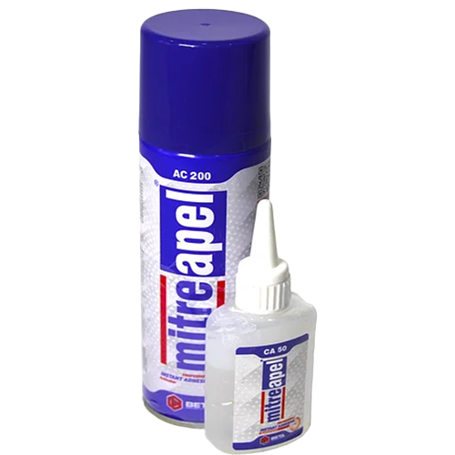 Двухкомпонентный клей MITREAPEL — это профессиональное решение для мгновенного и высокопрочного склеивания. Состоящий из высоковязкого цианоакрилатного клея и аэрозольного активатора, этот комплект обеспечивает непревзойденную скорость полимеризации и исключительную надежность соединения.