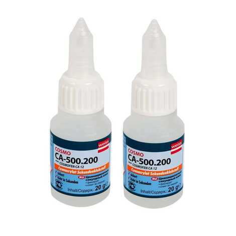 Цианоакрилатный клей Cosmofen CA 500.210 фирмы «Weiss» Производство Германия Это однокомпонентный быстросохнущий цианоакрилатный клей, основанный на этиле. Он характеризуется быстрым действием, приклеивание занимает всего несколько секунд. Цианоакрилатный клей Cosmofen CA 500.210 имеет многостороннее применение. Рекомендуется его применение при трудно склеиваемых предметах. Цианоакрилатный клей Cosmofen CA 500.210 наносится на одну поверхность, затем прижимается к другой до момента склеивания. Для ещё более быстрого приклеивания рекомендуется использовать активатор.