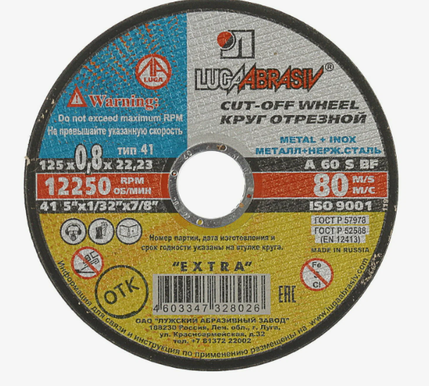 Круг отрезной абразивный по металлу Луга 125*0,8*22,2
