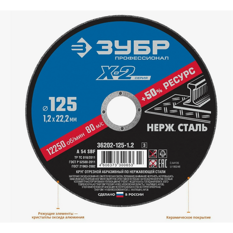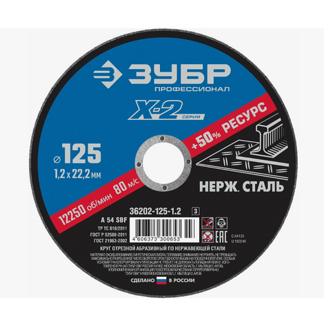 Круг отрезной ЗУБР 125*1*22,2 ПРОФЕССИОНАЛ
