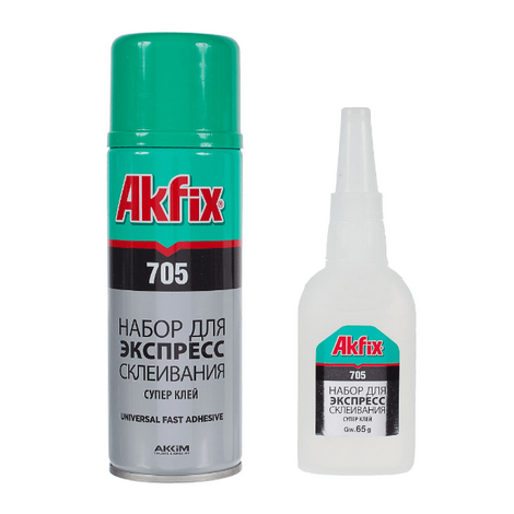 AKFIX 705 – двухкомпонентный клей, который состоит из вязкого геля цианоакрилата и аэрозоля активатора.