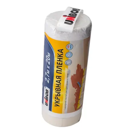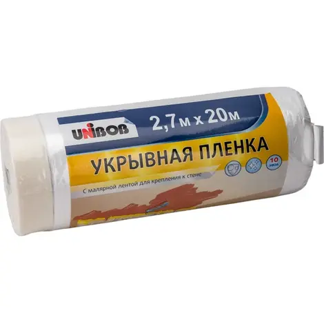 Пленка укрывная с малярной лентой UNIBOB 2,7м х 20м; 10 мкм прозрачная