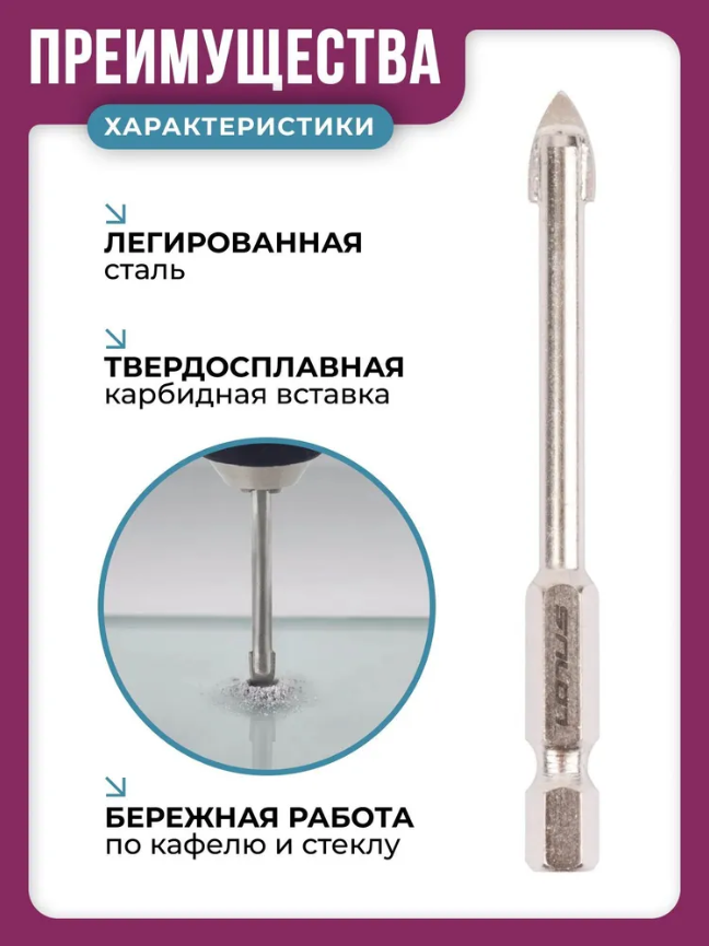 Сверло по стеклу и керамике Lotus 2 грани 6 мм