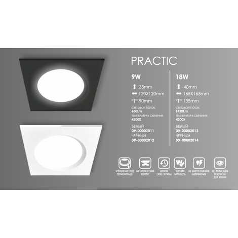 Светильник LED Панель Квадрат PRACTIC, 9W, 4200К, Белый, 120хD90х35