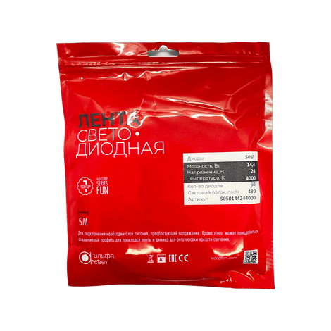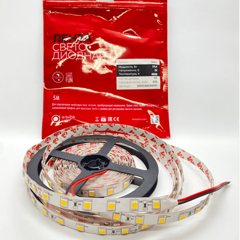 Светодиодная лента ALFA 14,4 w/60 точек/4000K/430лм (24v)
