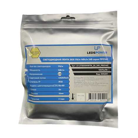 Светодиодная лента LEDS POWER (серия ПРО140), 24В, IP20, 176 LED/m, нейтральный белый.
