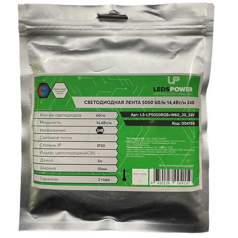 Светодиодная лента LEDS POWER 5050 14.4Вт/м, 24В, 60д/м, RGB + WHITE