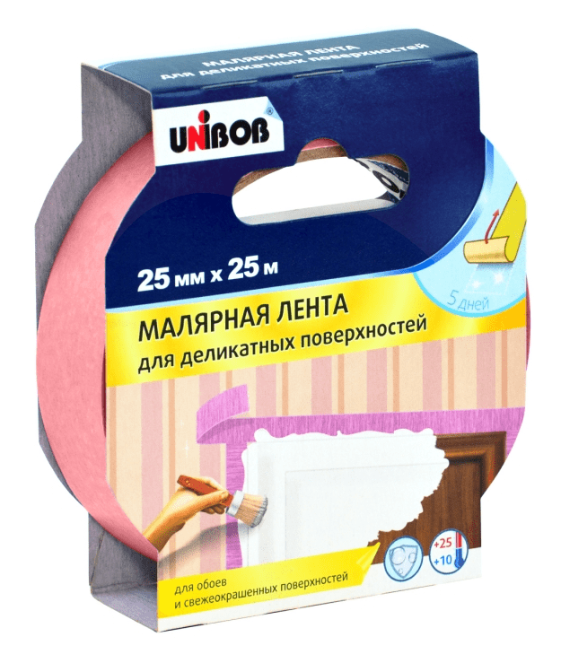 Малярная лента UNIBOB 25мм х 25м для деликатных поверхностей