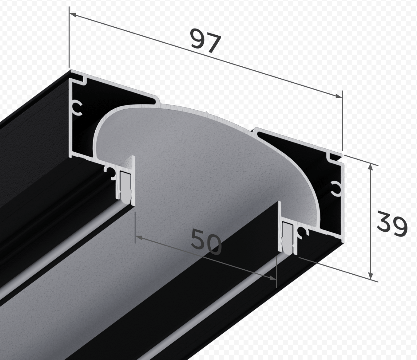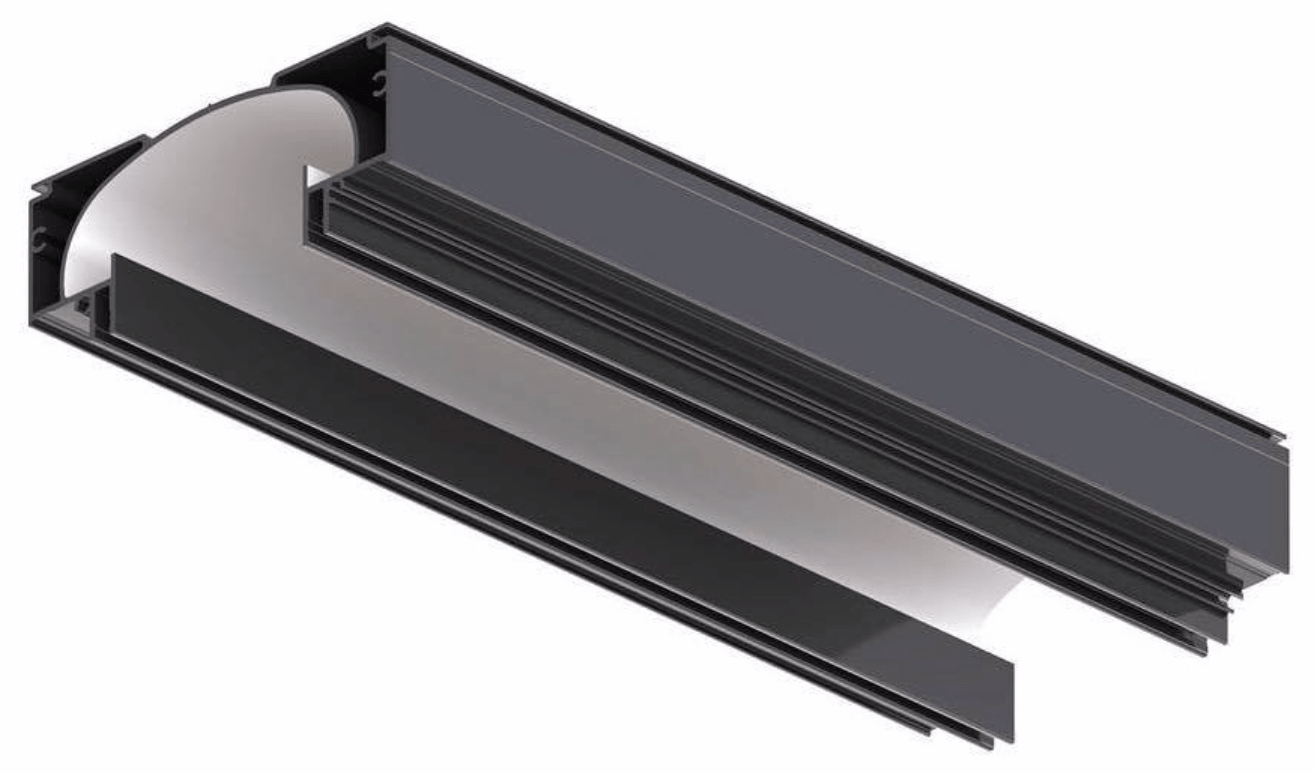 - Чёрно-белый профиль предназначен для эксплуатации совместно со светодиодной лентой различной мощности и для контрастного выделения линии освещения. Это эффектное и интересное решение в дизайне потолков.