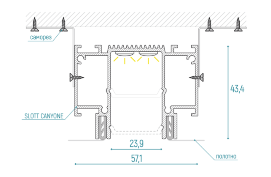 Профиль алюминиевый SLOTT Canyon, белый + рассеиватель (2.0м)