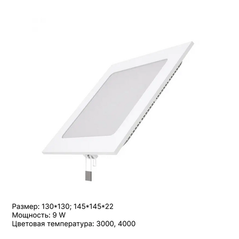 Светильник встраиваемый Gauss Slim квадрат 9W 4000K Ø130*130 145*145*22 (940111209)
