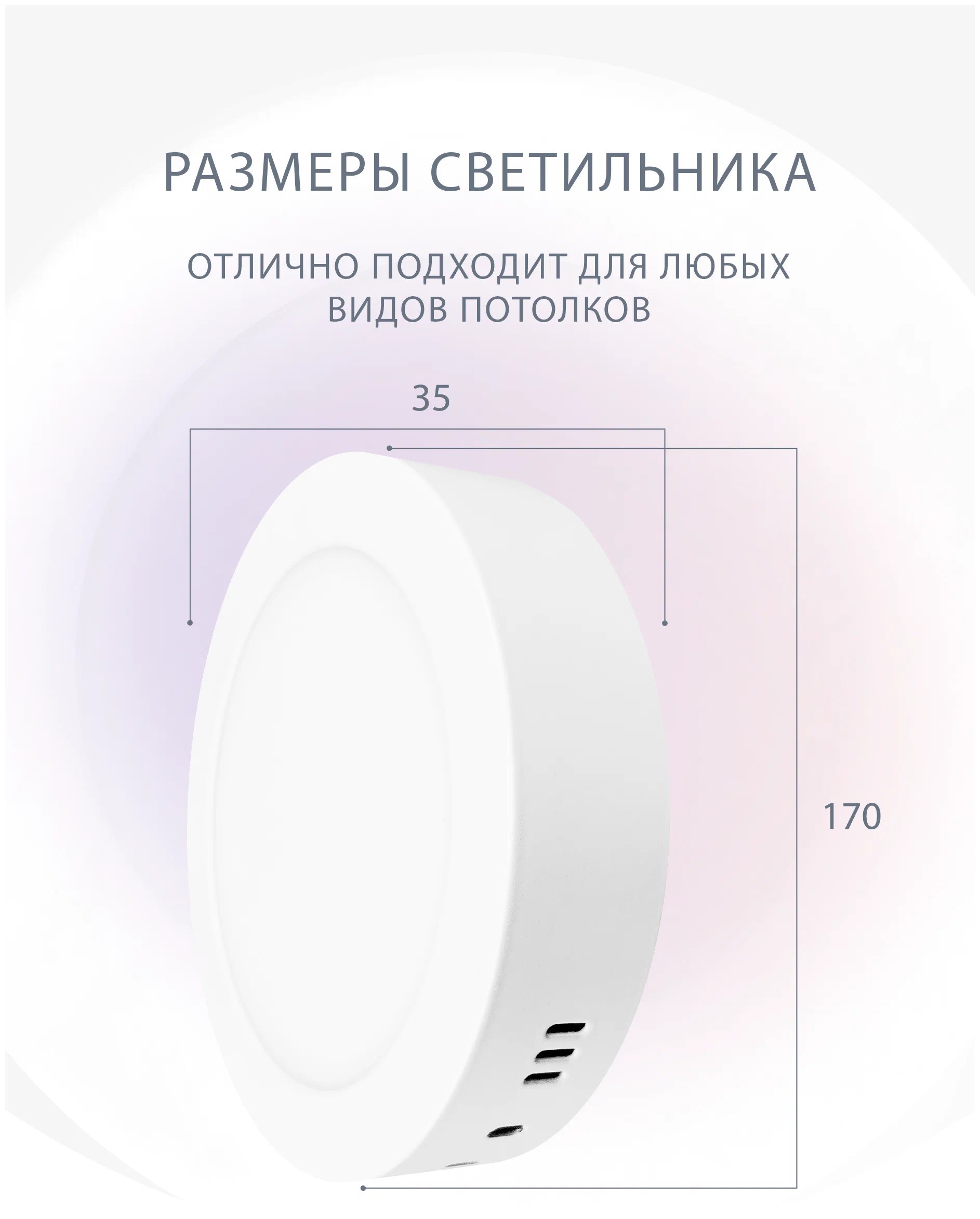 Умный накладной светильник New Vision, ø170*35, 13W, 2700К-6500К, RGB