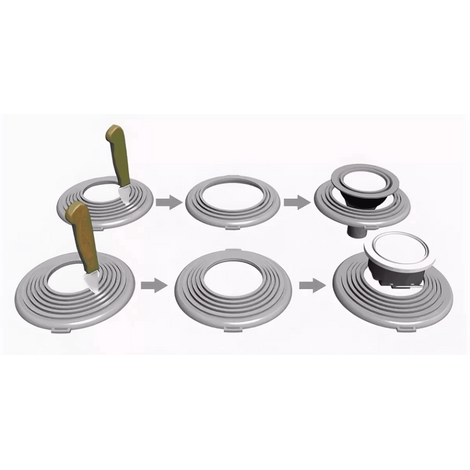 Для монтажа платформы вырезается кольцо нужного диаметра, которое крепится в месте установки светильника. Специальные отверстия упрощают и ускоряют процесс установки.