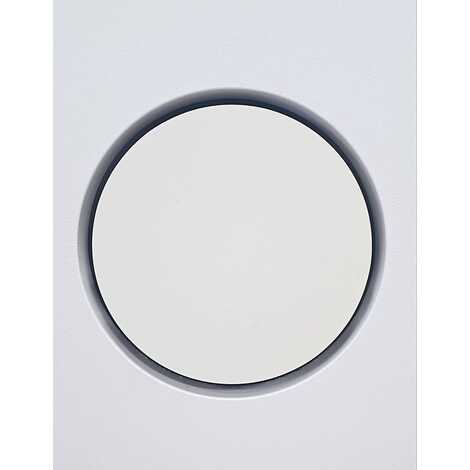 Декоративная часть решетки окрашена белой порошковой краской с текстурой муарового шелка, благодаря чему гармонично сочетается с белым матовым полотном натяжного потолка, создавая единый стильный образ.