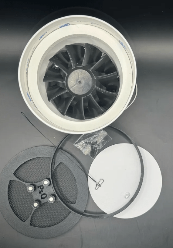 Теневой диффузор PQ PRO 125 с канальным вентилятором и защитной сеткой предназначен для установки в натяжные потолки. Он имеет размеры 125x100x85 мм и подходит для различных помещений.
