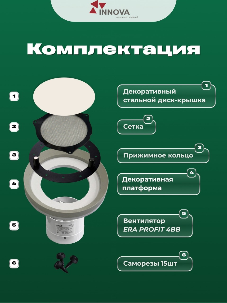 Вент. решетка с косым ребром + стандартный вентилятор ИННОВА