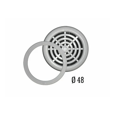 Вентиляционная решётка диаметром 48 мм с кольцом белого цвета предназначена для равномерного распределения воздушного потока в межпотолочном пространстве и основном помещении. Она помогает избежать конденсации, появления плесени и затхлого запаха.
