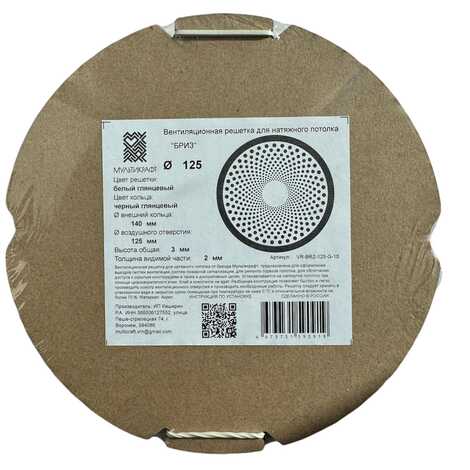 Вентиляционные решетки компании МУЛЬТИКРАФТ. В комплект входит установочное кольцо и сама решетка, представленная в трех цветовых решениях (белая решетка с белым кольцом, белая решетка с черным кольцом, черная решетка с черным кольцом). Размерный ряд диаметра - 50, 100 и 125мм.