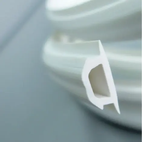 Вставка R-образная используется при установке разделителя, она закрывает технический зазор между потолками. Вставка напоминает форму гриба, своей выпуклой частью вставляется в разделитель, а широкой «шляпкой» закрывает место пристыковки потолков. Таким образом, получается аккуратно выполненное соединение полотен.