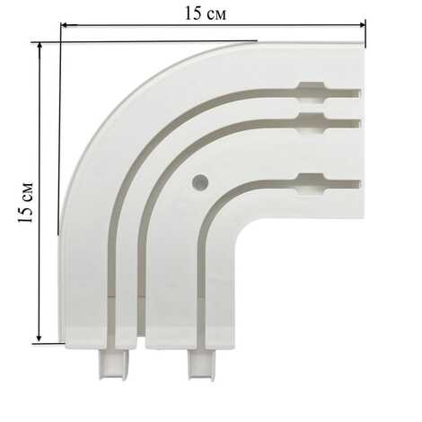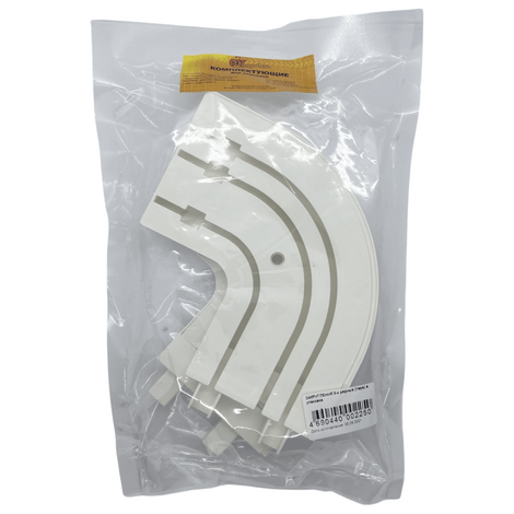 Соединитель поворотный трехрядный является готовым решением для карнизов с пластиковой шиной. Это поворотный элемент, который позволяет создать пластиковую шину с круглыми боковинами или эркером. Изготовлен из белого пластика.